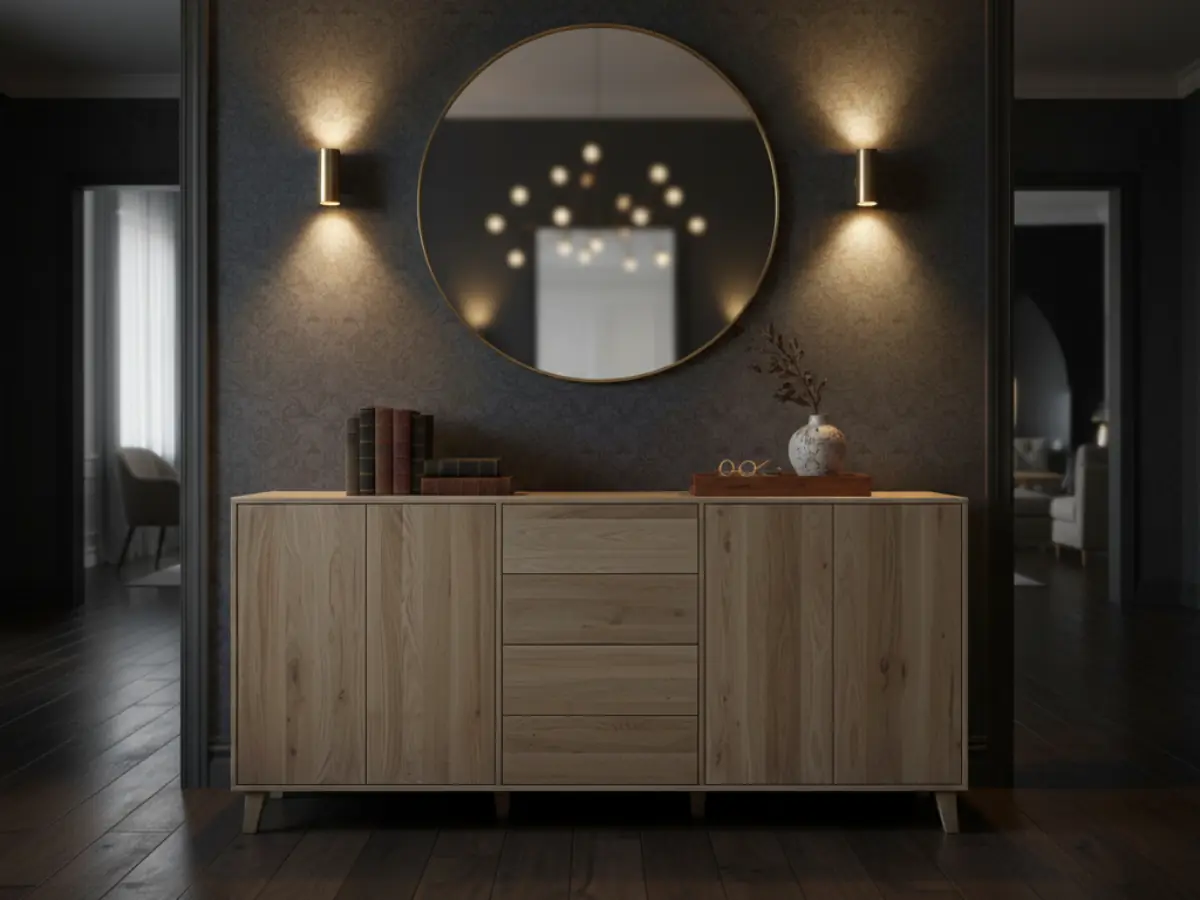 Podsumowanie: funkcjonalny przedpokój z dębową komodą