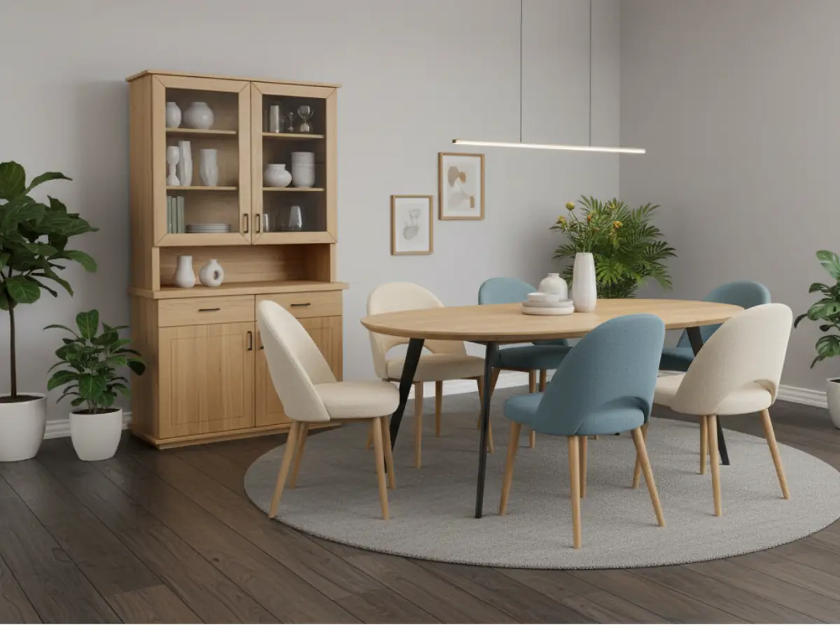 Stół dębowy w jadalni. Aranżacja salonu z jadalnią w otwartej przestrzeni – praktyczne wskazówki