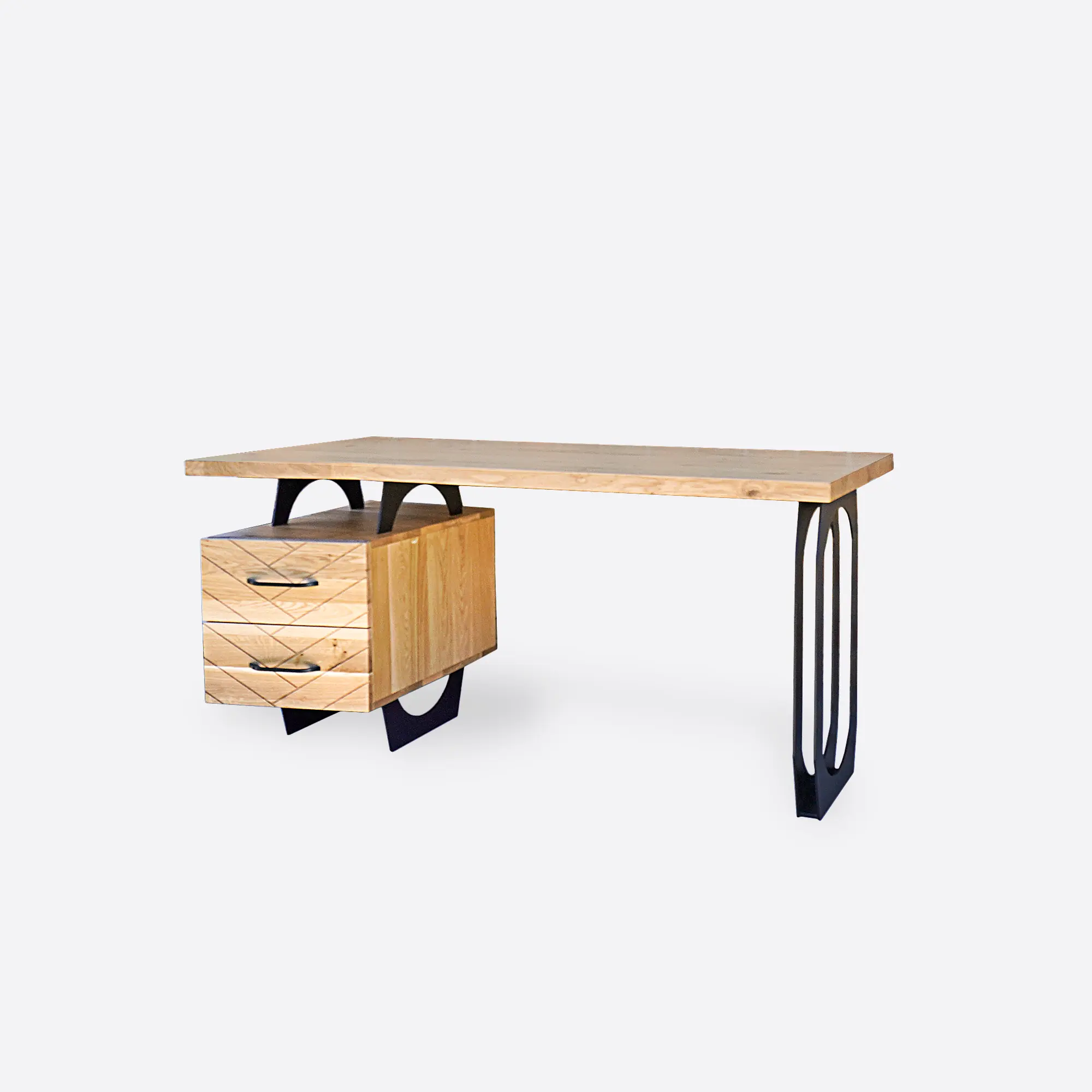 Biurko dębowe z metalowymi nogami do gabinetu WALT