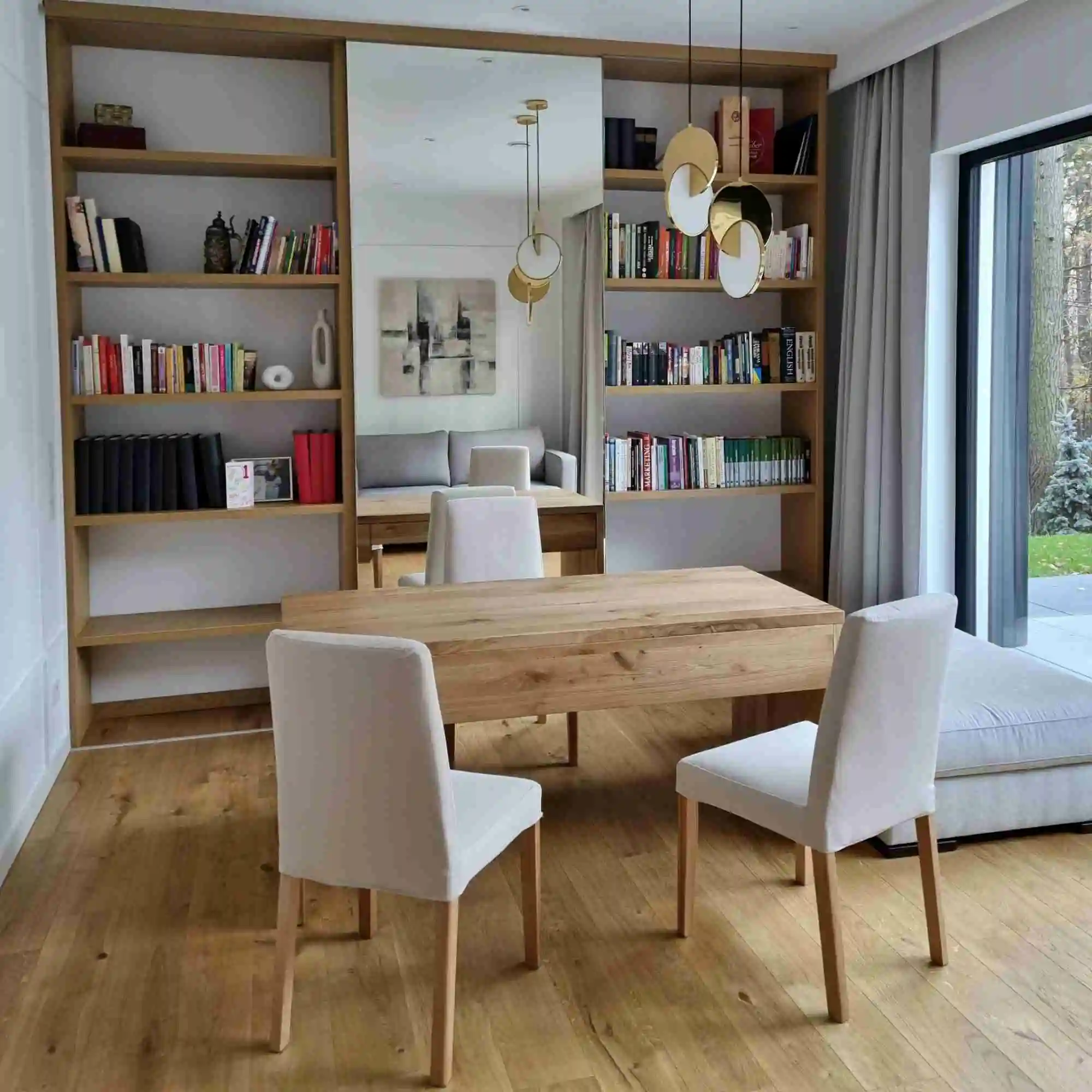 Biurko z litego drewna na wymiar to fundament funkcjonalnego miejsca pracy, ale dopiero kompleksowe wyposażenie biura tworzy prawdziwie ergonomiczną i inspirującą przestrzeń. W RaWood oferujemy pełen zakres mebli biurowych na wymiar – od biurek, przez regały, komody, aż po szafy i kontenery, wszystko wykonane z litego drewna dębowego. W przeciwieństwie do mebli z płyt wiórowych, lite drewno zachowuje swoje właściwości przez dziesięciolecia, co czyni je idealnym rozwiązaniem dla biur firmowych, gabinetów czy przestrzeni coworkingowych, gdzie meble muszą wytrzymywać intensywne, codzienne użytkowanie przez wielu użytkowników.Ergonomia i funkcjonalność to kluczowe aspekty przy projektowaniu przestrzeni biurowej. Biurko na wymiar dostosowane do wzrostu użytkownika, regały na dokumenty i książki w zasięgu ręki, komody z odpowiednio zaprojektowanym systemem szuflad na materiały biurowe – wszystkie te elementy razem tworzą spójną, efektywną przestrzeń pracy. W gabinetach menedżerskich i przestrzeniach coworkingowych szczególnie ważne jest, aby meble nie tylko spełniały funkcje praktyczne, ale również budowały profesjonalny wizerunek i motywowały do pracy. Odpowiedni dobór mebli biurowych zapobiega bólom pleców, karku i nadgarstków, zwiększa produktywność i komfort psychiczny pracowników.Wartość estetyczna kompletu mebli drewnianych w biurze nie maleje z czasem – przeciwnie, naturalne piękno drewna, wyraziste słoje i ciepły odcień sprawiają, że przestrzeń biurowa nabiera charakteru i elegancji. To szczególnie ważne w gabinetach, gdzie odbieramy klientów, przestrzeniach coworkingowych, które budują swoją markę na atmosferze, czy biurach open space, gdzie estetyka wpływa na samopoczucie całego zespołu. Meble z litego drewna to inwestycja długoterminowa – w przeciwieństwie do trendowych rozwiązań z materiałów kompozytowych, drewniane wyposażenie biura jest ponadczasowe, można je odnawiać i dostosowywać do zmieniających się potrzeb firmy.Zamów Biurko na Wymiar - Podsumowanie