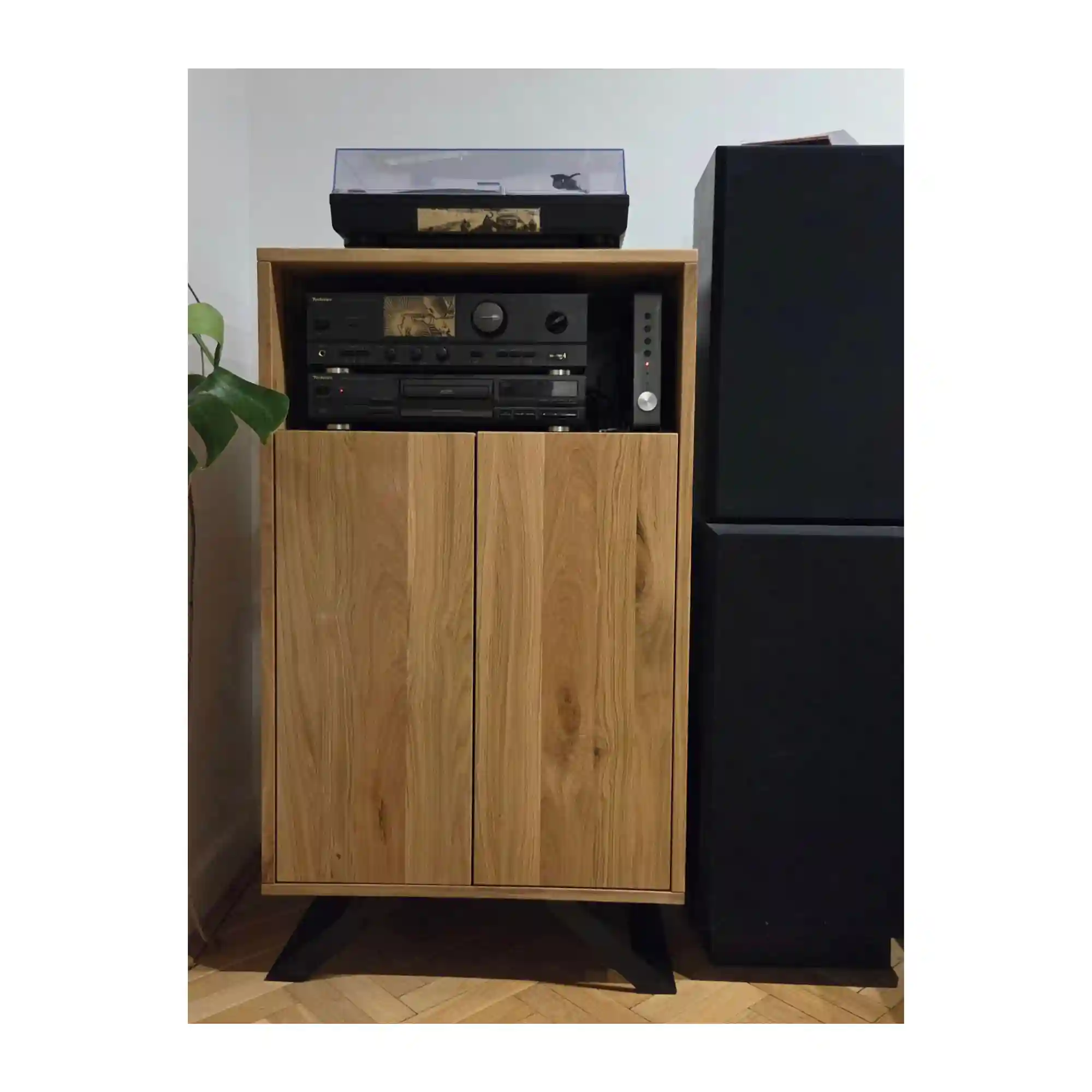 Dębowa szafka z drewna litego i metalu do salonu JORGEN II