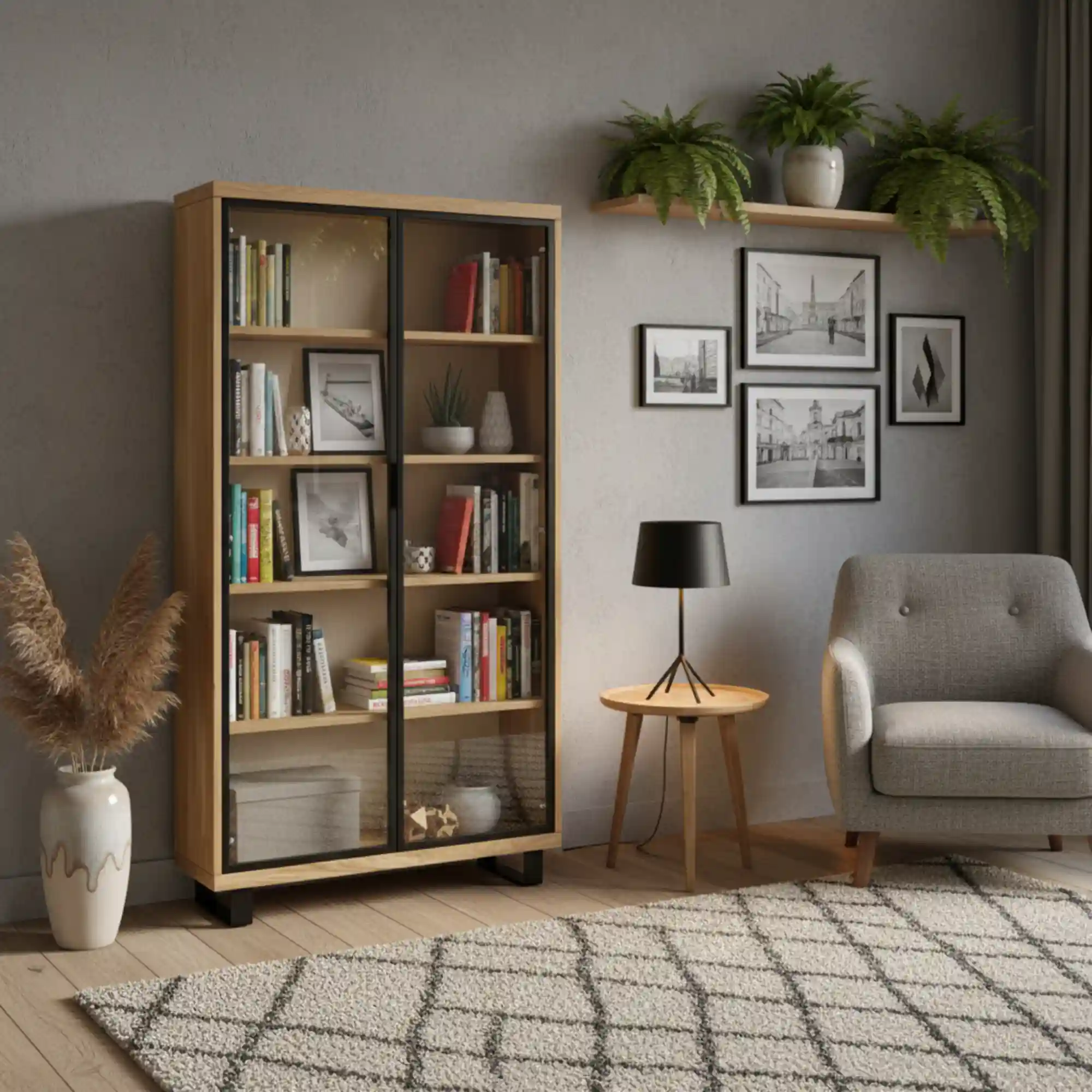Połączenie naturalnego drewna z czarną stalą nadaje meblom DELIO uniwersalny styl, który doskonale sprawdzi się w salonach, jadalniach oraz gabinetach, gdzie liczy się estetyka, solidność i funkcjonalność.
