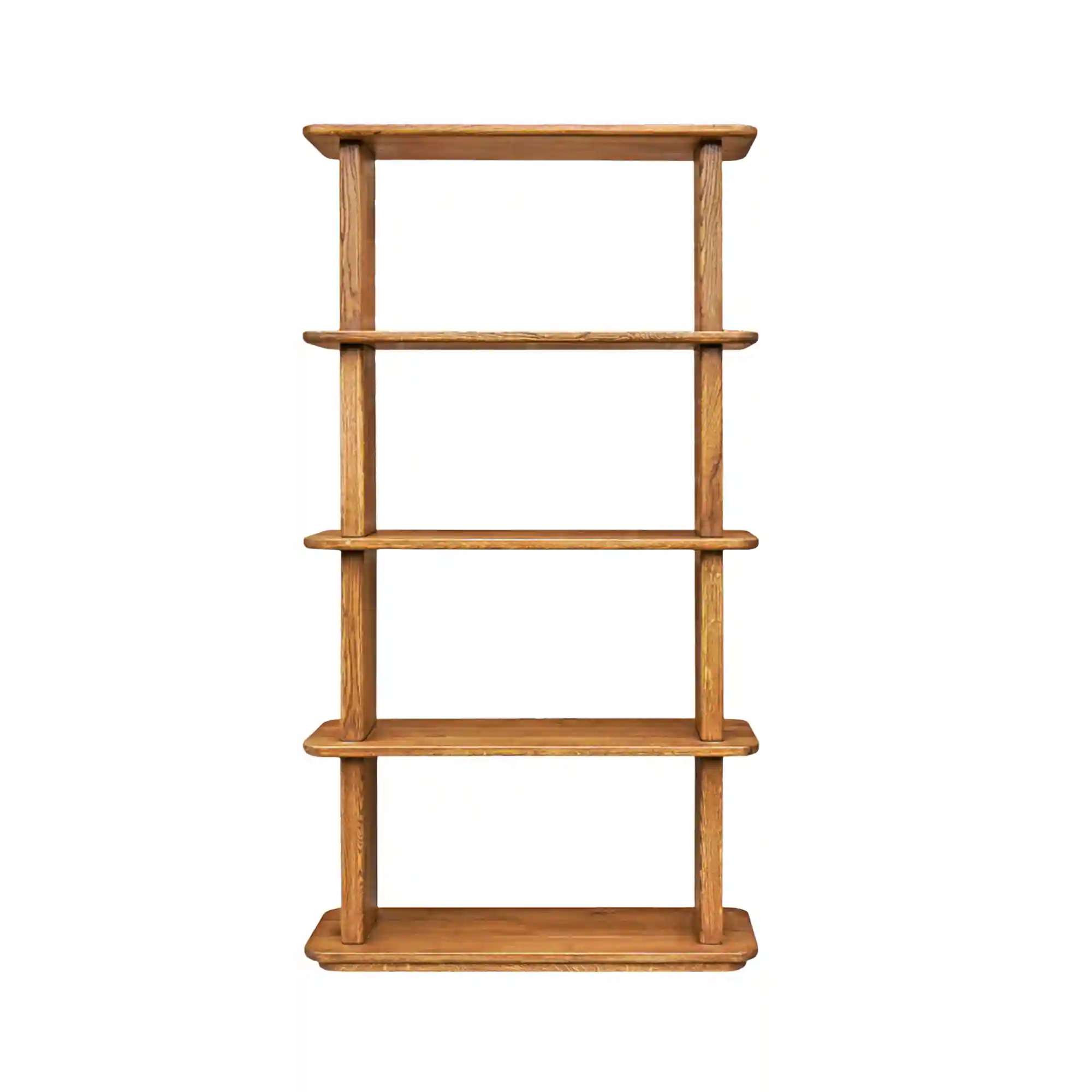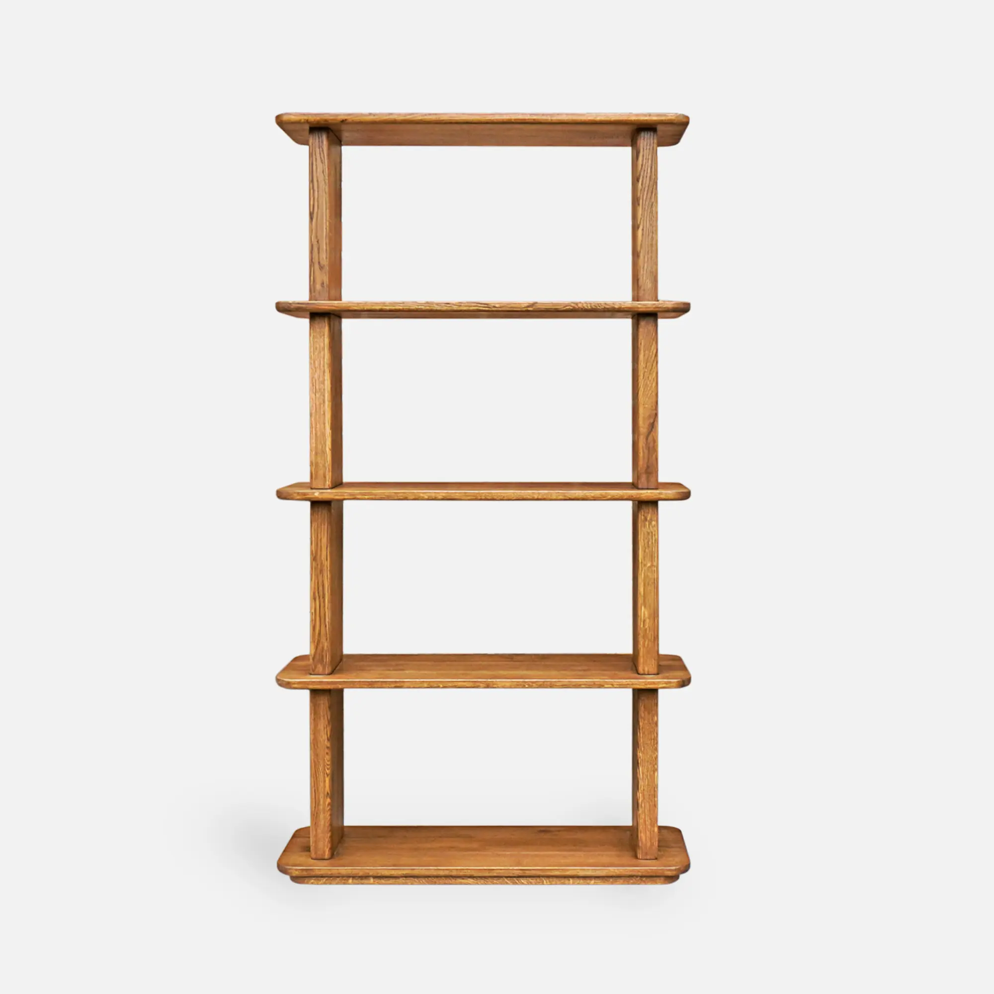 Słupek dębowy TERIN to mebel, który łączy w sobie minimalistyczny design, naturalne piękno drewna i praktyczność. Jego konstrukcja oparliśmy na solidnym, litym drewnie dębowym, które odznacza się wyjątkową trwałością i odpornością na uszkodzenia. Charakterystycznym elementem są zaokrąglone ranty oraz wyoblone krawędzie półek, które nadają mu harmonijną, naturalną linię. Otwarta konstrukcja dębowego regału pozwala na estetyczne wyeksponowanie książek, dekoracji czy pamiątek rodzinnych. Naturalne wykończenie olejem w kolorze “orzech” nie tylko podkreśla unikalne usłojenie drewna, ale również zapewnia dodatkową ochronę przed codziennym użytkowaniem. Dzięki swojej uniwersalnej stylistyce słupek TERIN sprawdzi się zarówno w nowoczesnych, skandynawskich, jak i klasycznych aranżacjach. Doskonale pasuje do salonu, domowej biblioteki, gabinetu czy nawet przedpokoju, gdzie może pełnić funkcję eleganckiego regału na drobne przedmioty.