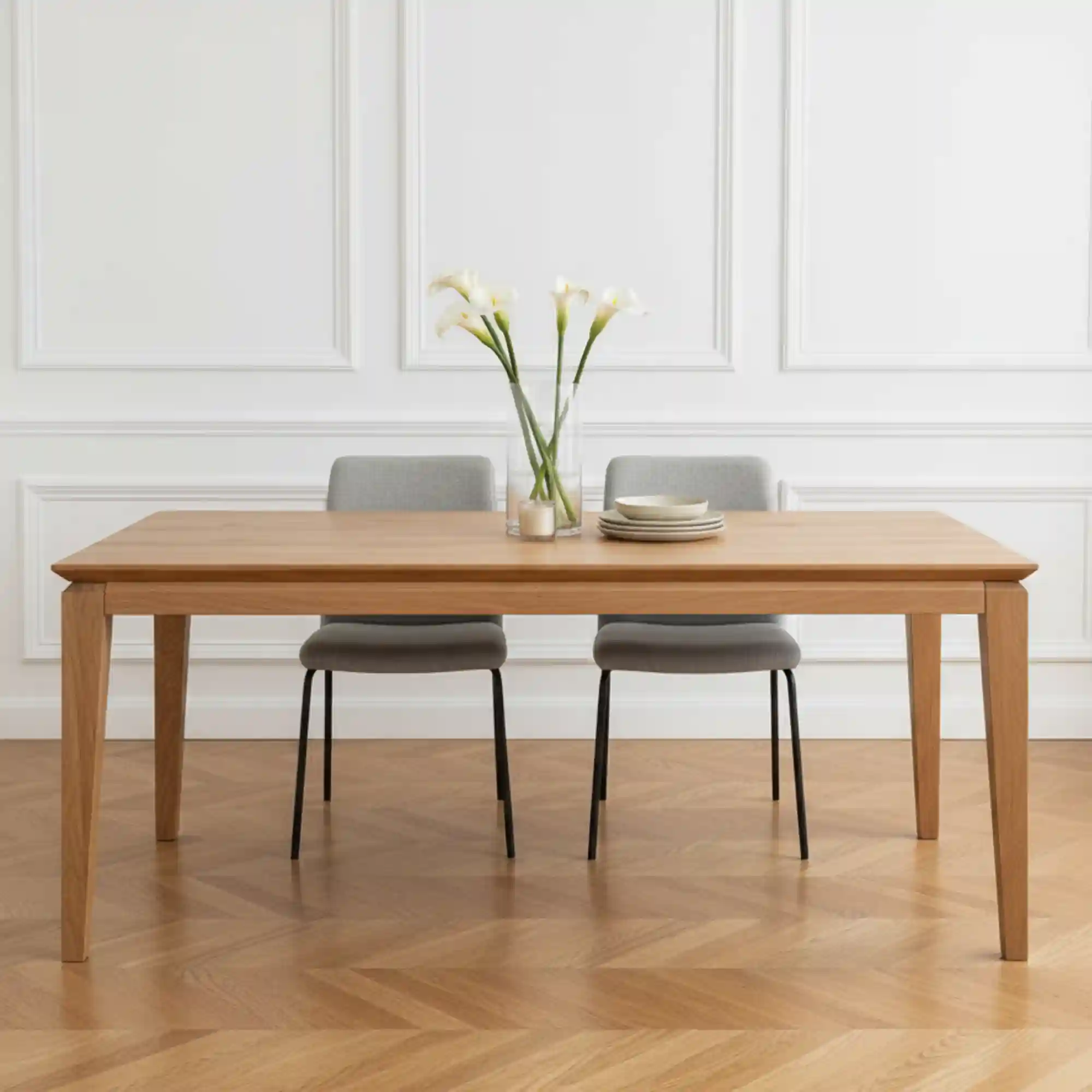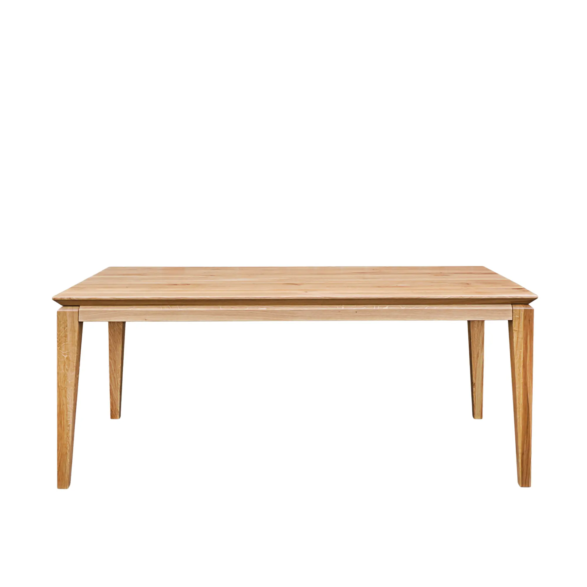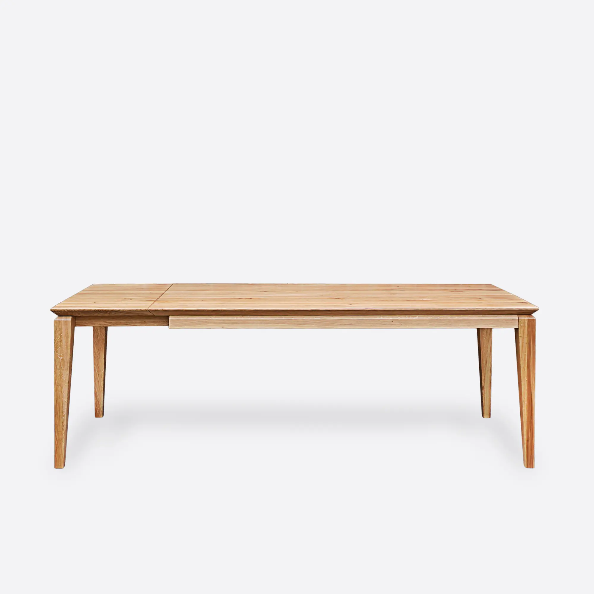 Dębowy stół rozkładany DANTE I to elegancka i funkcjonalna propozycja do jadalni, salonu lub kuchni, która łączy ponadczasowy styl z nowoczesnymi detalami. To nowa, odświeżona wersja bestsellerowego modelu DANTE, wyróżniająca się subtelniejszą formą i lekkim, wizualnie smukłym profilem. Charakterystyczne, pocienione z obu stron nogi stołu nadają konstrukcji finezyjnego wyglądu, jednocześnie zachowując pełną stabilność. Blat stołu o grubości 4 cm został wykonany z naturalnego litego drewna dębowego, znanego z wyjątkowej trwałości i eleganckiego usłojenia. Dodatkowo, jego szwajcarskie podcięcie podkreśla nowoczesny charakter mebla i sprawia, że całość prezentuje się lekko i estetycznie – nawet w większych rozmiarach. To stół, który idealnie wpasuje się zarówno w przestrzenie minimalistyczne, loftowe, jak i klasyczne. Możesz zamówić rozkładaną wersję stołu dębowego DANTE I. Dzięki nowoczesnemu systemowi front slide z łatwością i w krótkim czasie powiększysz powierzchnię stołu. Wystarczy odsunąć nogi i ułożyć dostawki na prowadnicach. Ciesz się spotkaniami w większym gronie, nie rezygnując z komfortu i stylu.