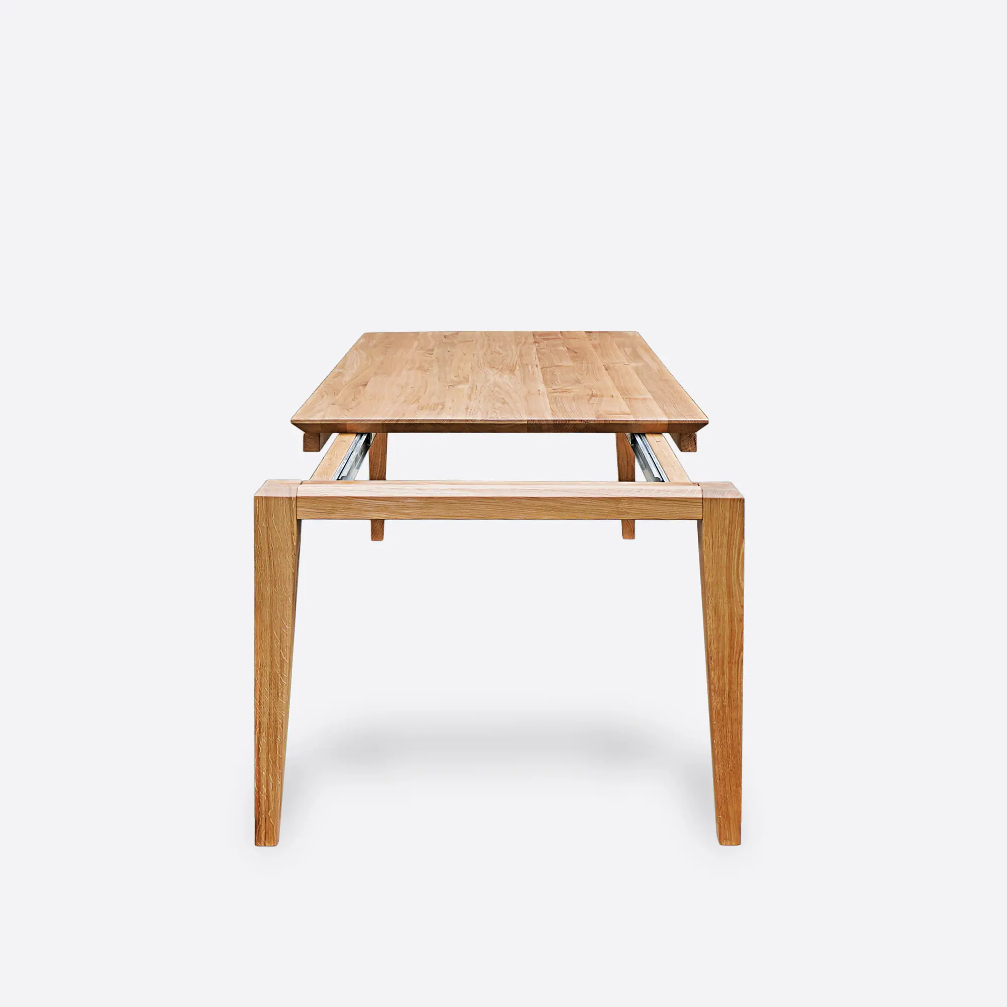 Stoły rozkładane wykonane z litego drewna dębowego wyposażone w mechanizm front-slide to doskonałe rozwiązanie dla osób ceniących elastyczność i komfort użytkowania. Rozkładanie odbywa się przez płynne rozsunięcie blatu z jednej strony i włożenie praktycznych dostawek. Dzięki temu stół może pomieścić więcej osób – idealne rozwiązanie na rodzinne spotkania, święta czy domowe przyjęcia. Mechanizm ten jest trwały, intuicyjny i wyjątkowo wygodny w obsłudze. Przykłady innych modeli z tym rozwiązaniem to TOSCANIA, MOVA, NACK II, CORTEZ II czy THOR. To funkcjonalne i eleganckie stoły drewniane, cenione przez naszych klientów. W ofercie posiadamy także stoły dębowe rozkładane z metalową podstawą jak VIVA II czy ATTON. Jednym z największych atutów tych stołów jest zastosowany mechanizm rozkładania front-slide, który umożliwia szybkie i bezproblemowe zwiększenie powierzchni blatu. To znacząco wpływa na ich design i komfort użytkowania. Wszystkie modele łączy wysoka jakość wykonania, precyzja detali i funkcjonalność, którą doceniają nasi klienci.