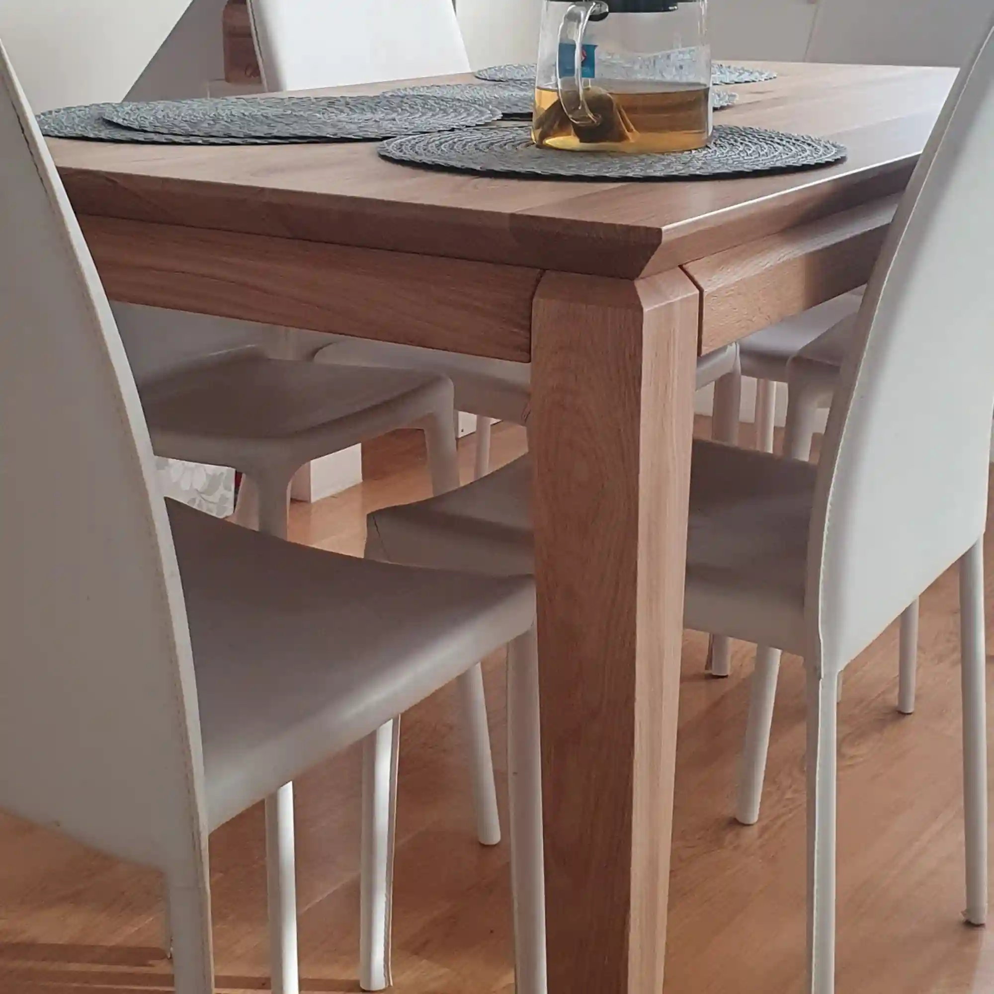 Decydując się na stół na indywidualne zamówienie w RaWood, otrzymujesz mebel stworzony specjalnie dla Ciebie – dopasowany wymiarami, kształtem, typem nóg i wykończeniem do Twojej przestrzeni i stylu życia. Stół z litego drewna dębowego to inwestycja na lata, która zachowuje swoją wartość i piękno przez dziesięciolecia.Nie wahaj się skontaktować z nami, jeśli masz pytania lub potrzebujesz porady w doborze odpowiedniego rozwiązania. Nasz zespół z chęcią pomoże wybrać wymiary, typ nóg, wykończenie i wszystkie szczegóły stołu na wymiar, który idealnie wpisze się w Twoje wnętrze. Odpowiedź otrzymasz w ciągu 24 godzin.Zamów stół na wymiar w RaWood i ciesz się pięknem naturalnych materiałów, perfekcyjnym wykonaniem oraz meblem stworzonym dokładnie według Twoich oczekiwań. Odwiedź naszą pełną kolekcję stołów drewnianych i znajdź inspirację dla swojego projektu!Zalety i pielęgnacja mebli lakierowanych