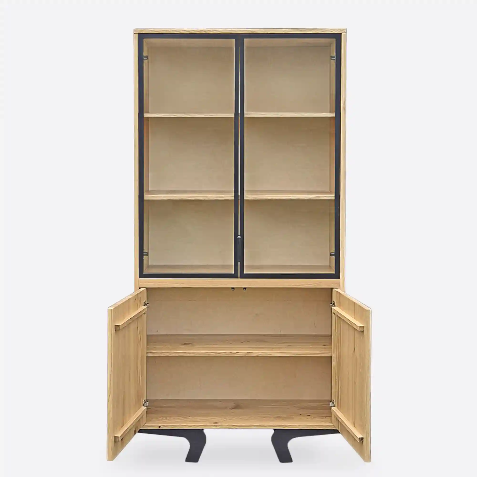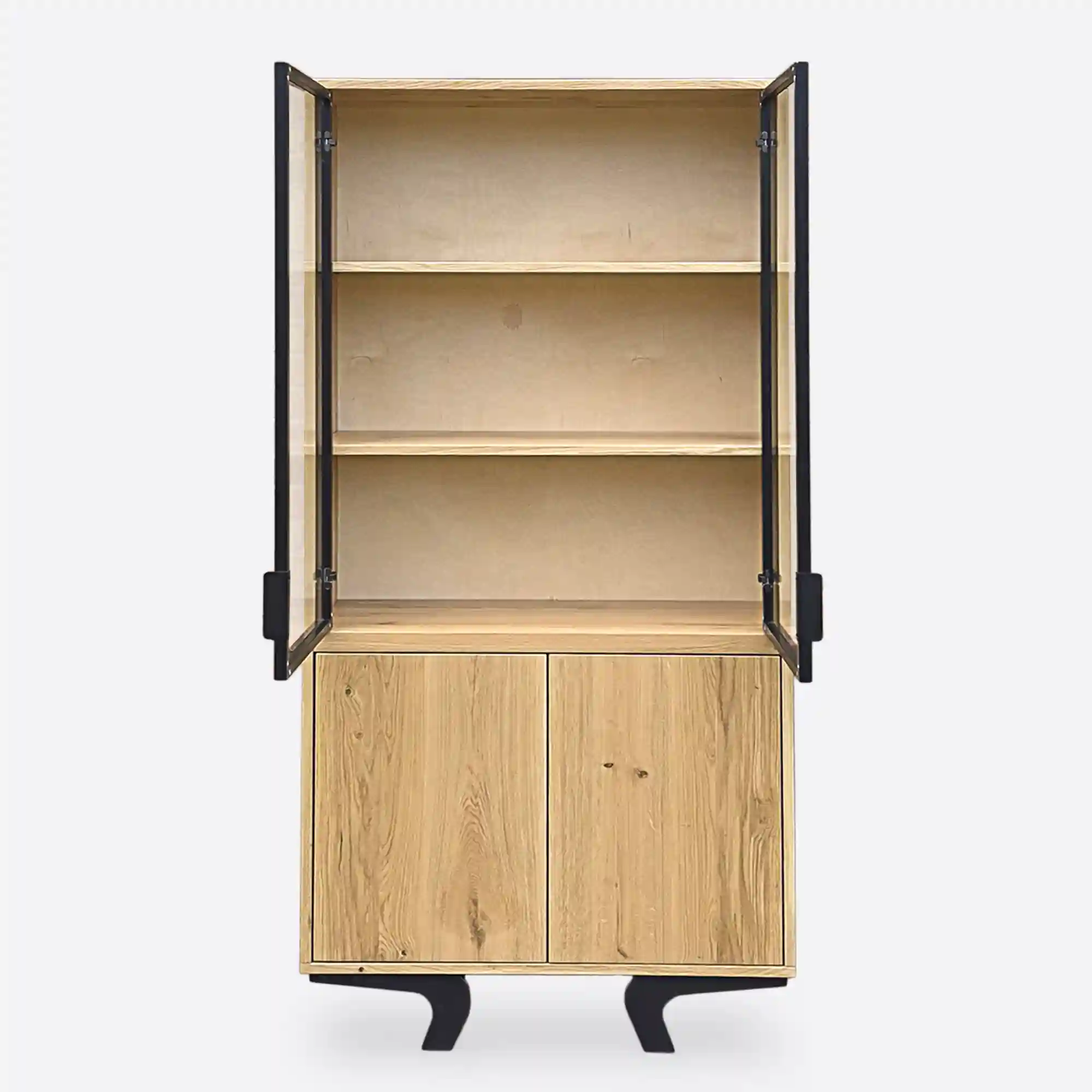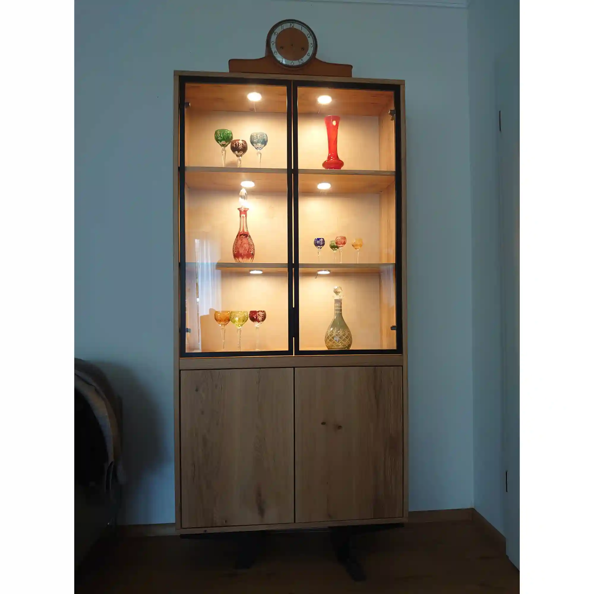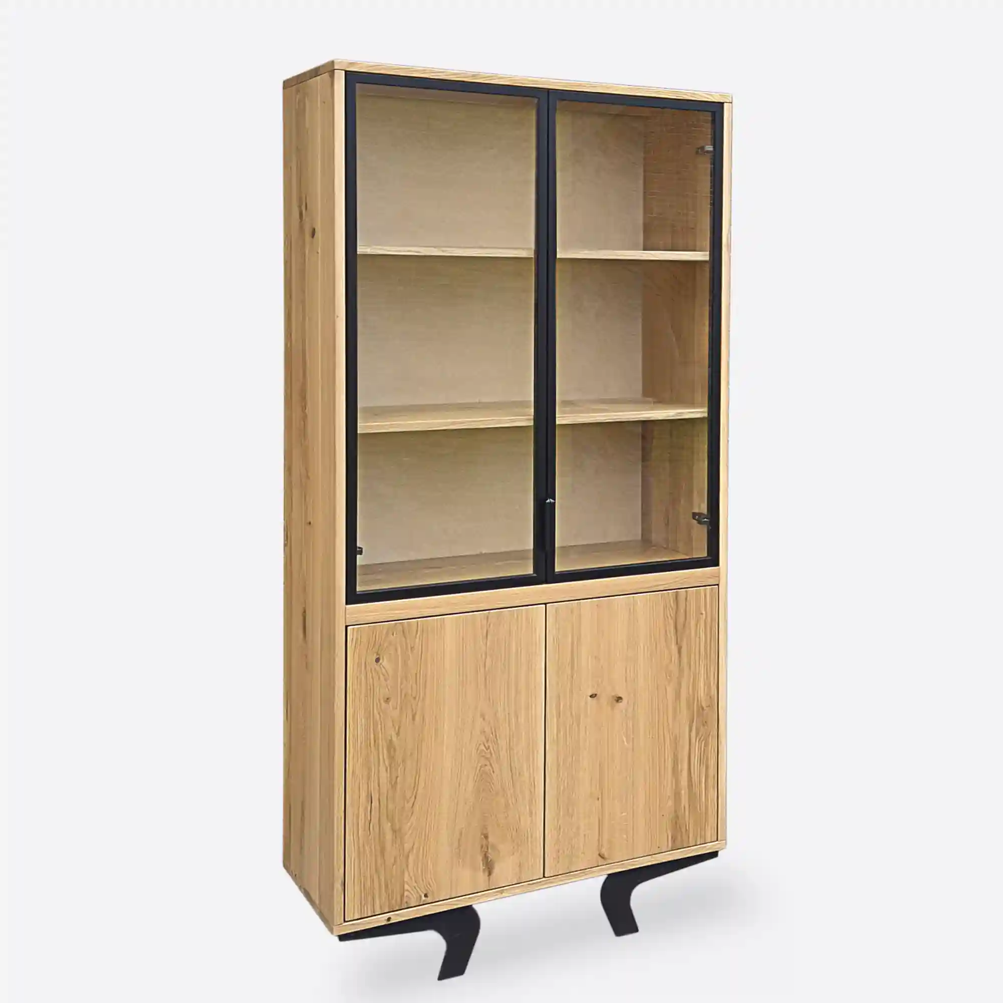witryna tworzona w RaWood powstaje na indywidualne zamówienie z litego drewna dębowego. Dzięki możliwości personalizacji wymiarów, układu półek, typu szkła, systemu oświetlenia oraz wykończenia,