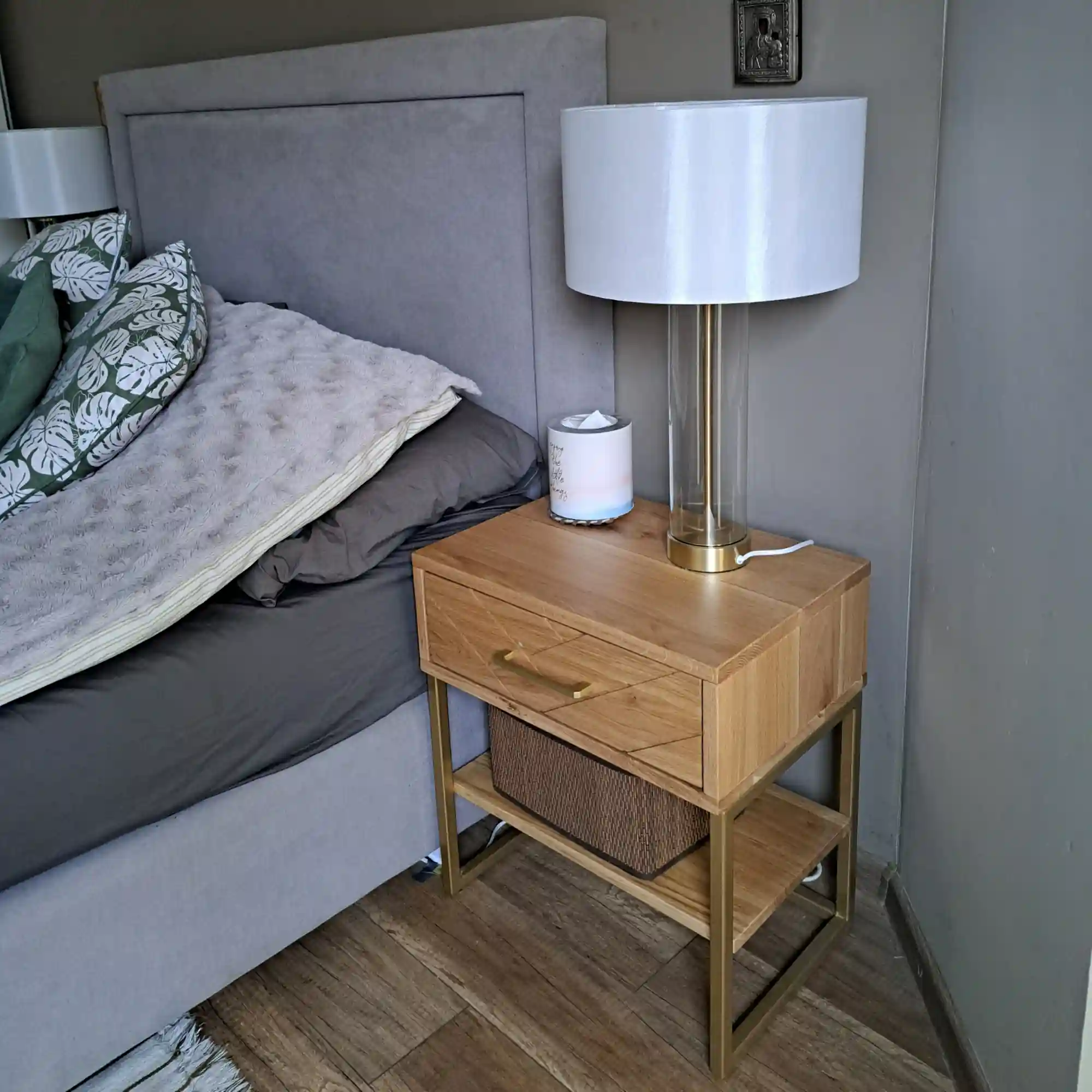 Stolik nocny z półką i szufladą
