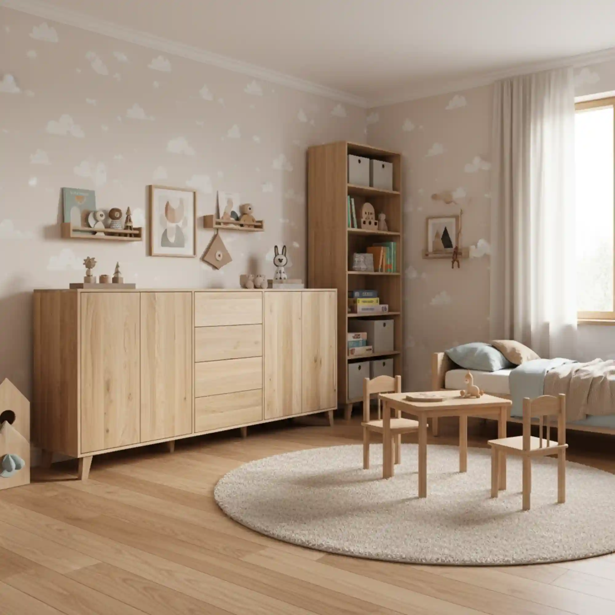 Znakiem rozpoznawczym kolekcji NESS są dekoracyjnie frezowane fronty w formie regularnych, pionowych rowków. Ten detal nadaje meblom głębi, rytmu i designerskiego charakteru, jednocześnie zachowując prostotę typową dla skandynawskiego wzornictwa. Frezowane powierzchnie subtelnie pracują ze światłem, dzięki czemu meble NESS prezentują się wyjątkowo zarówno w jasnych, jak i bardziej stonowanych wnętrzach. To detal, który przyciąga uwagę, nie dominując całej aranżacji.Lekka forma i naturalne proporcje