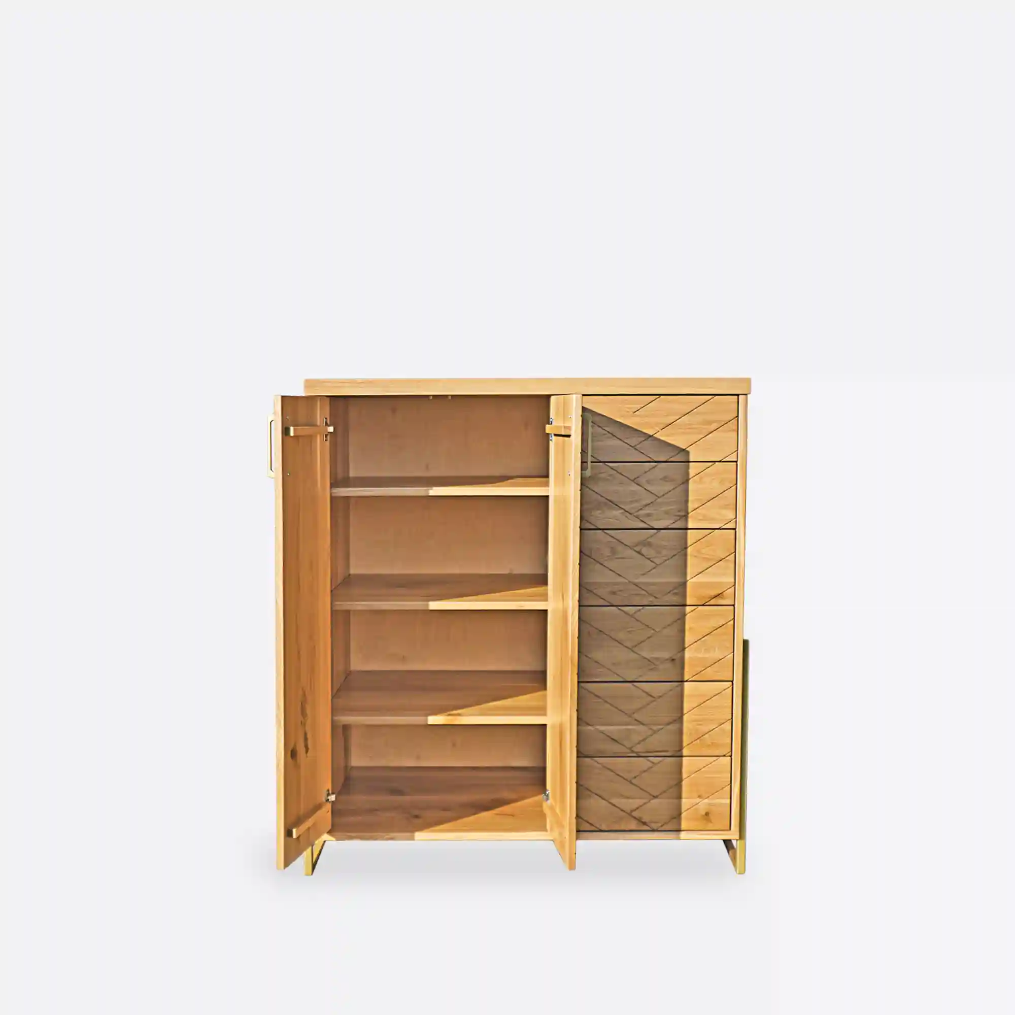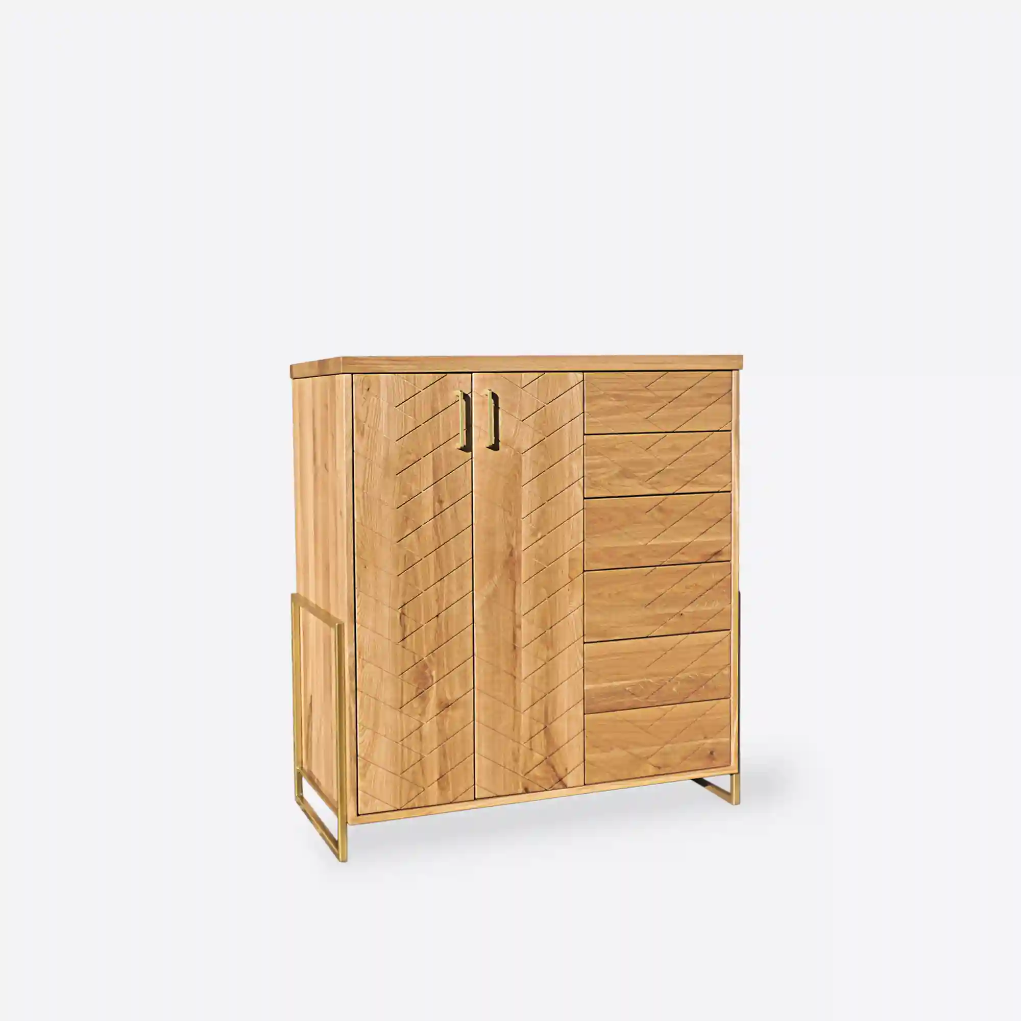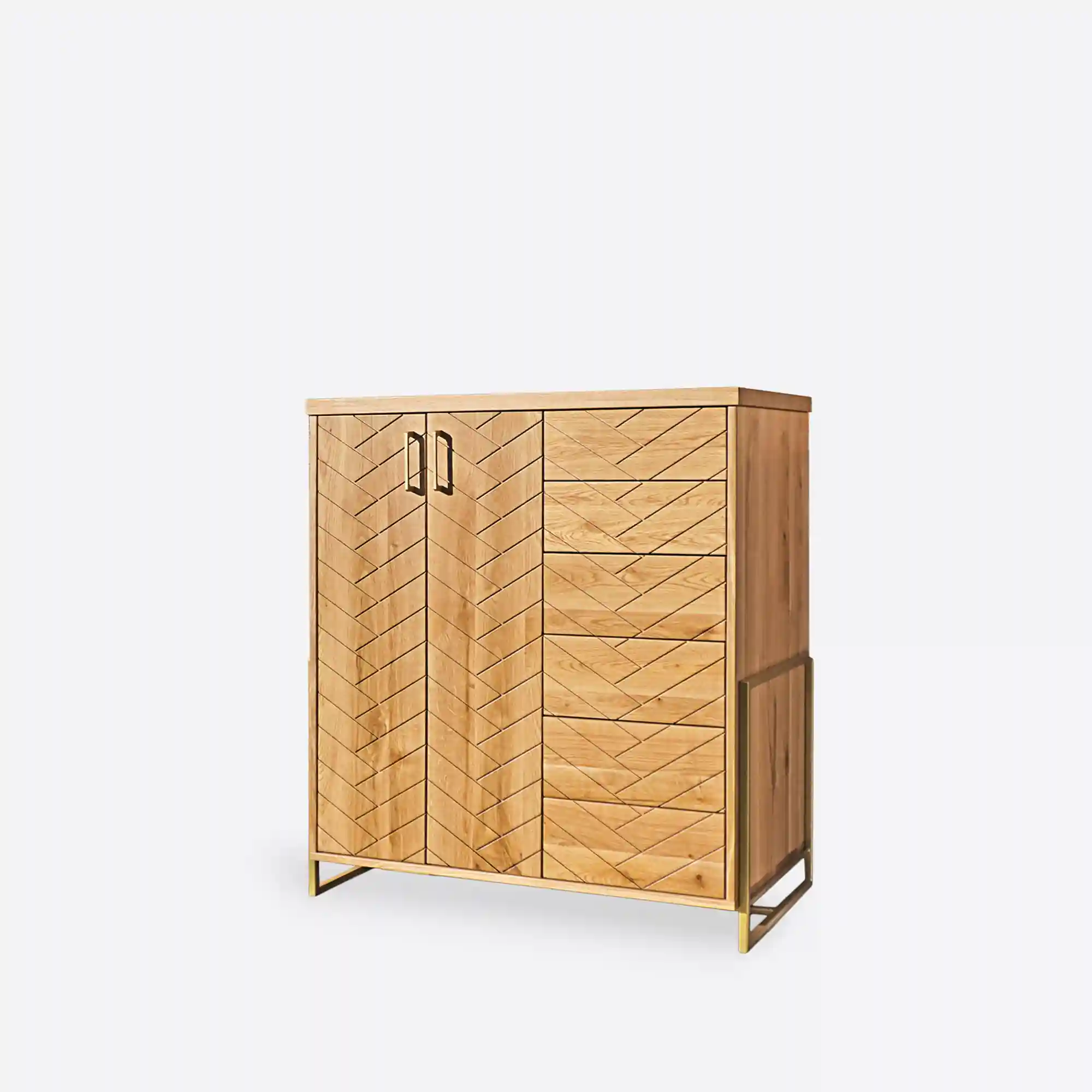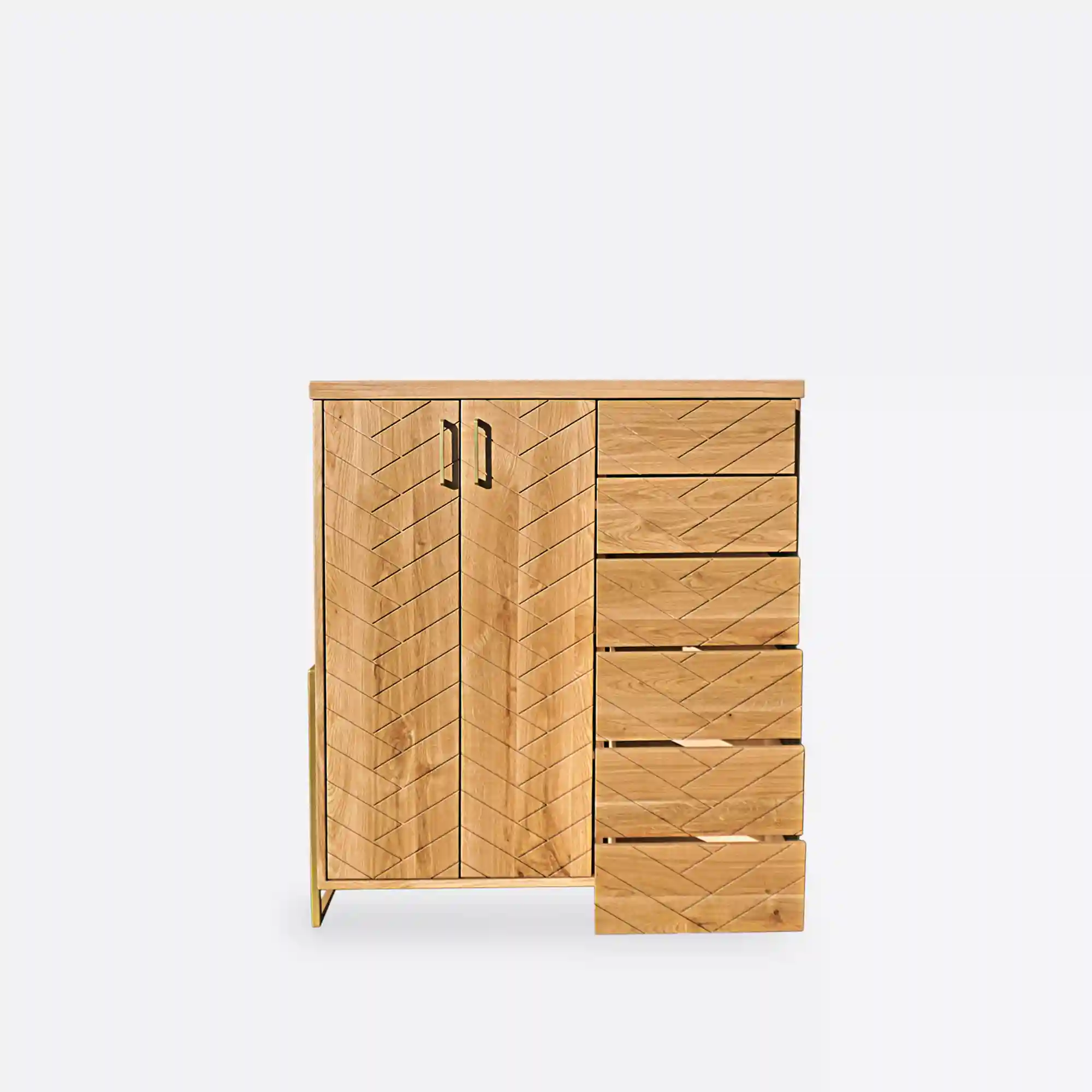 Komoda z dębowego drewna w jodełkę do salonu CARIN