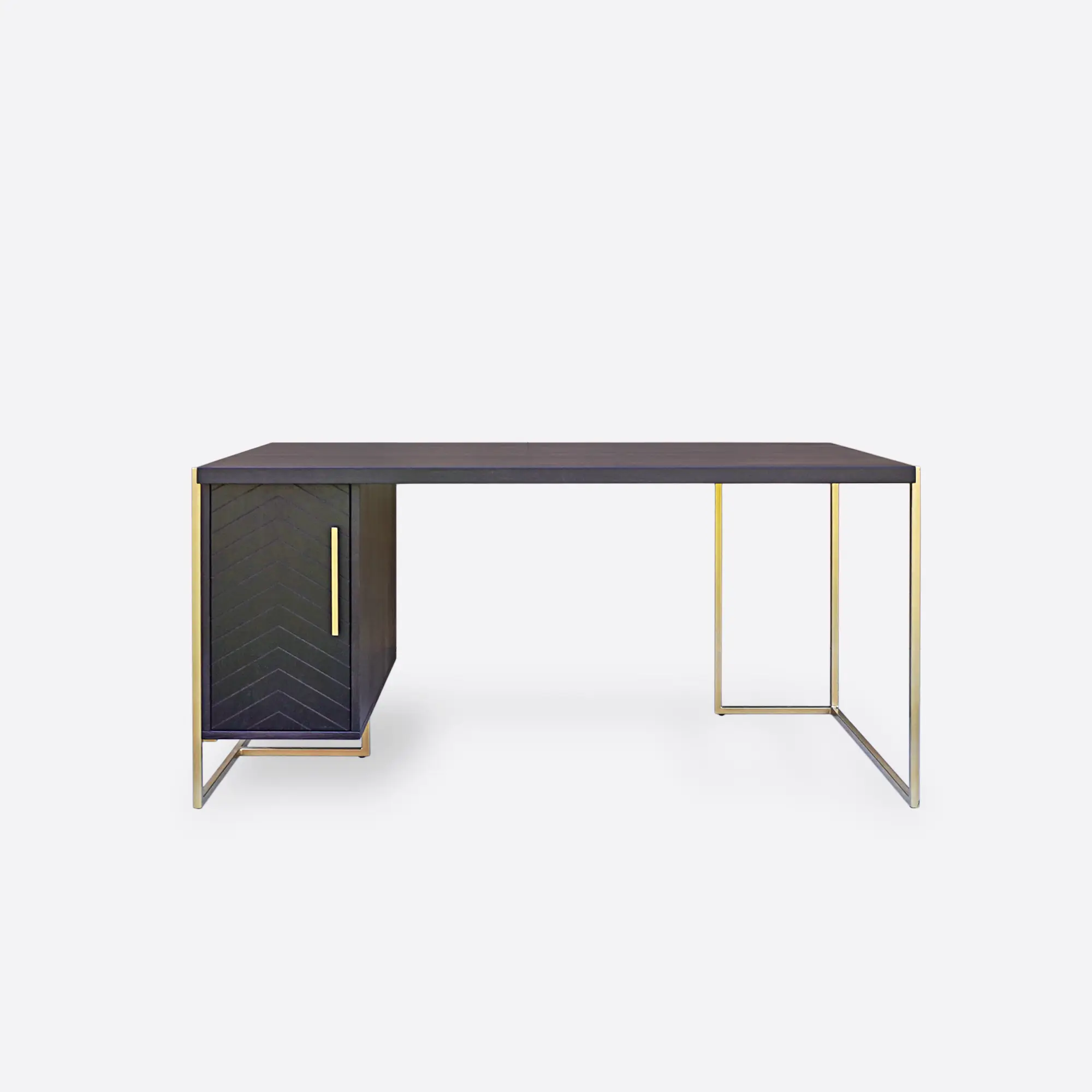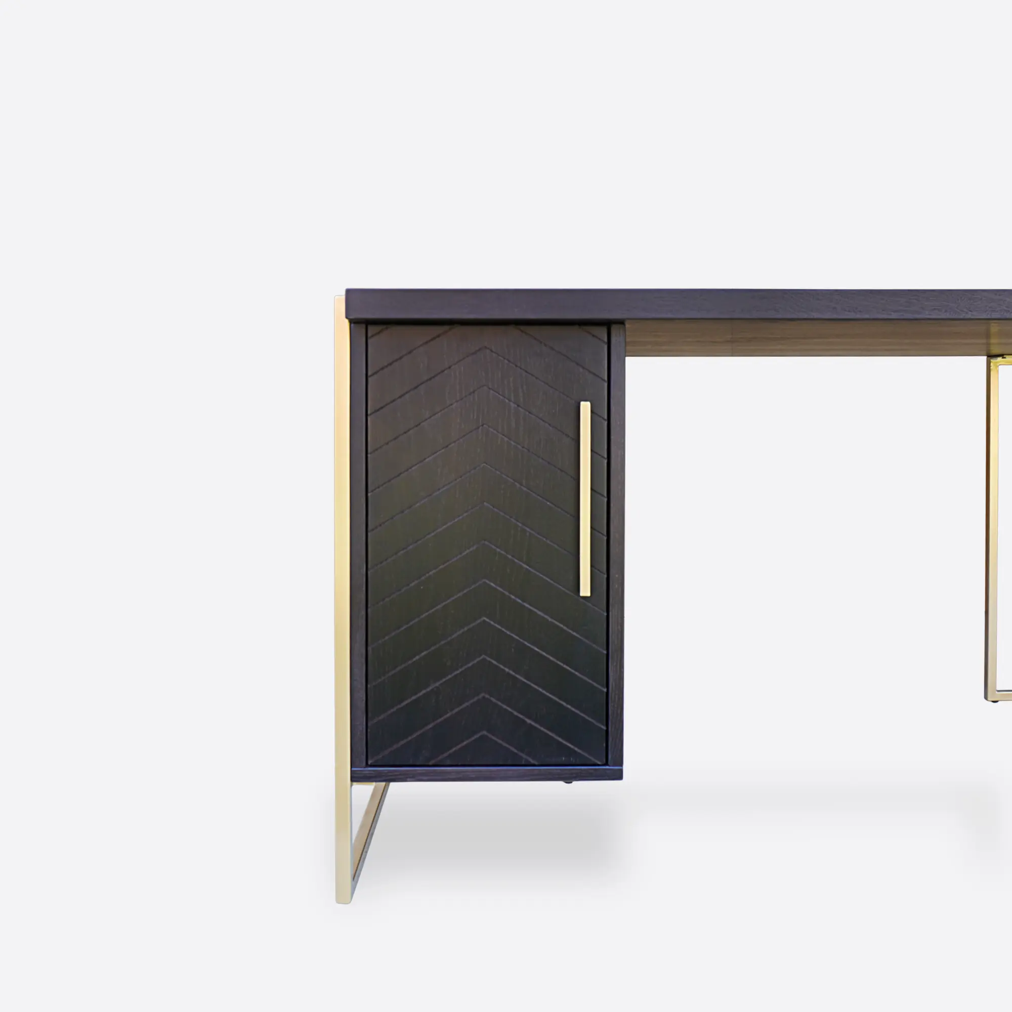 Nowoczesne biurko z drewna dębowego CARIN to ponadczasowy mebel, który dobrze sprawdzi się zarówno w domu, jak i w biurze. Eleganckie biurko drewniane wykonano z naturalnego drewna dębowego, które jest solidne, trwałe i piękne. Natomiast nogi i uchwyt wykonano ze stali malowanej proszkowo na kolor złoty. Malowanie proszkowe zapewnia trwałość, dzięki czemu pomalowane elementy stalowe są niezwykle odporne na różne czynniki. Dlatego nasze biurka do biura wykonane z najwyższej jakości materiałów stanowią gwarancje solidności oraz trwałości. Duże biurko drewniane nowoczesne z metalowymi nogami posiada duży kontenerek z półką w środku. Stylowe biurko drewniane posiada funkcjonalną i uniwersalną formę, która pozwala na zamontowanie kontenerka z lewej lub z prawej strony, w zależności od wyboru Klienta. Nowoczesne biurko z drewna CARIN wykonywane na zamówienie to idealne i spersonalizowane miejsce do pracy w gabinecie, jak i biurze.