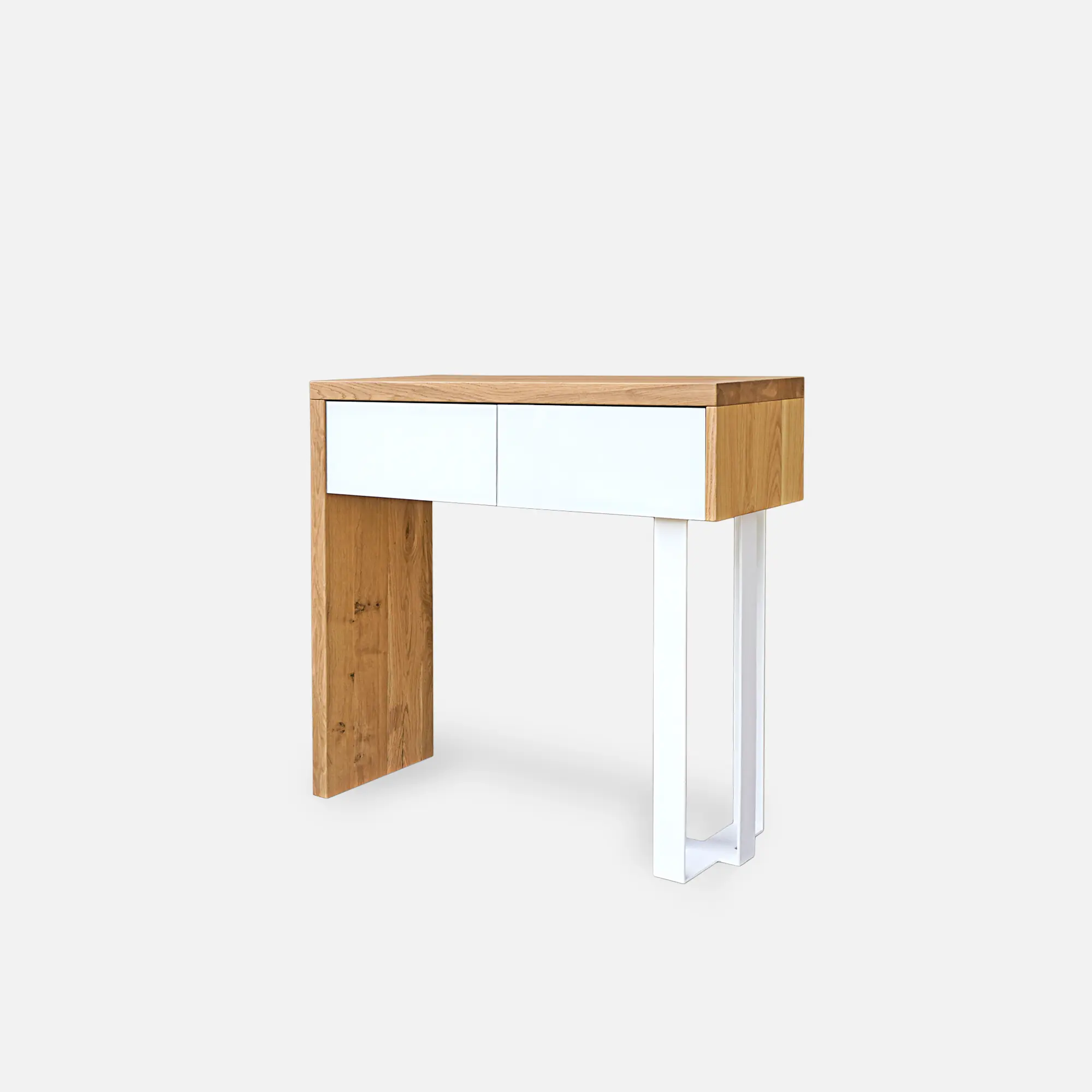 W wąskim przedpokoju konsole na wymiar to wygodne rozwiązanie. Jeśli chcesz, aby konsola do przedpokoju była dopasowana do Twoich potrzeb, napisz do nas poprzez formularz “Dostosuj konsolę”. Wszystkie nasze meble w tym pomocniki przedpokoju wykonane są ręcznie dzięki czemu jako producent mebli możemy personalizować każde zamówienie. Tworzymy meble dopasowane do każdego wystroju wnętrza – od skandynawskiego po loftowy. W zależności od tego jaki styl dominuje w Twoim domu, możesz dobrać kolor drewna czy stali tak aby pasował do reszty wnętrza. Konsole wykonane na zamówienie to indywidualne meble dopasowane do Twoich potrzeb. Postaw na konsole do przedpokoju prosto od producenta!