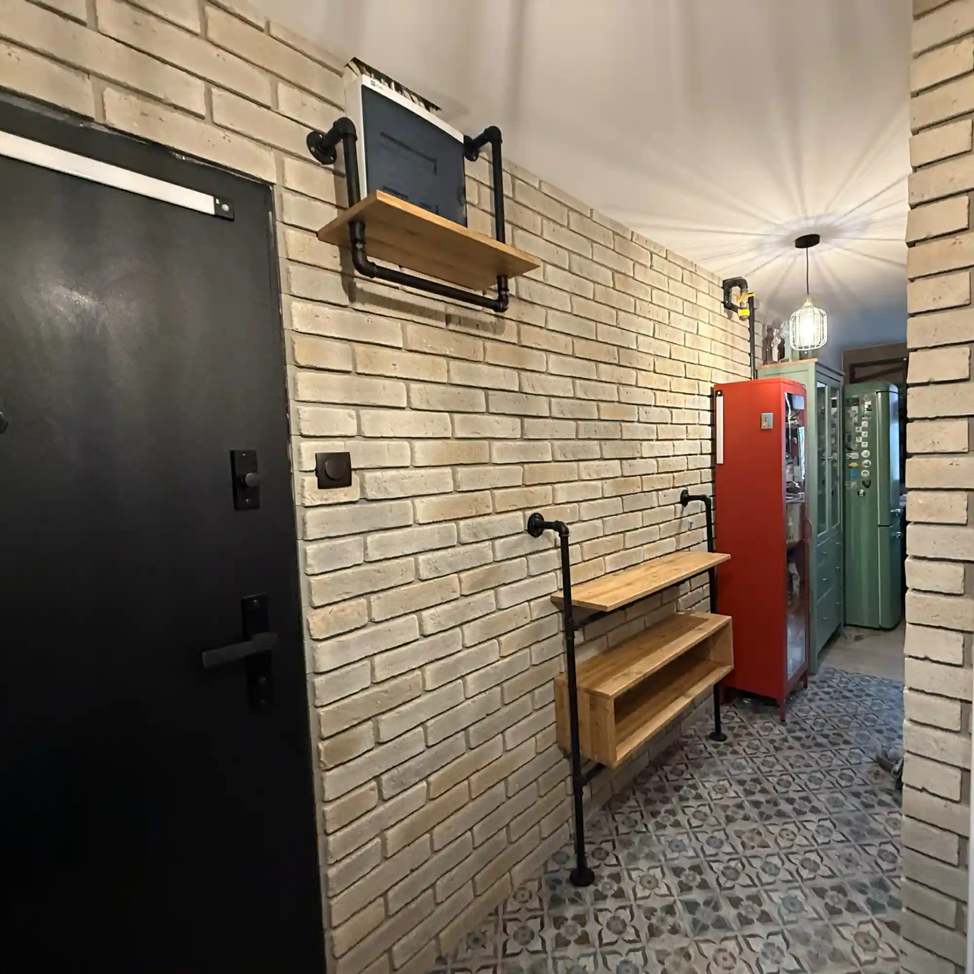 Industrialny regał drewniany ścienny modułowy do pokoju DENAR