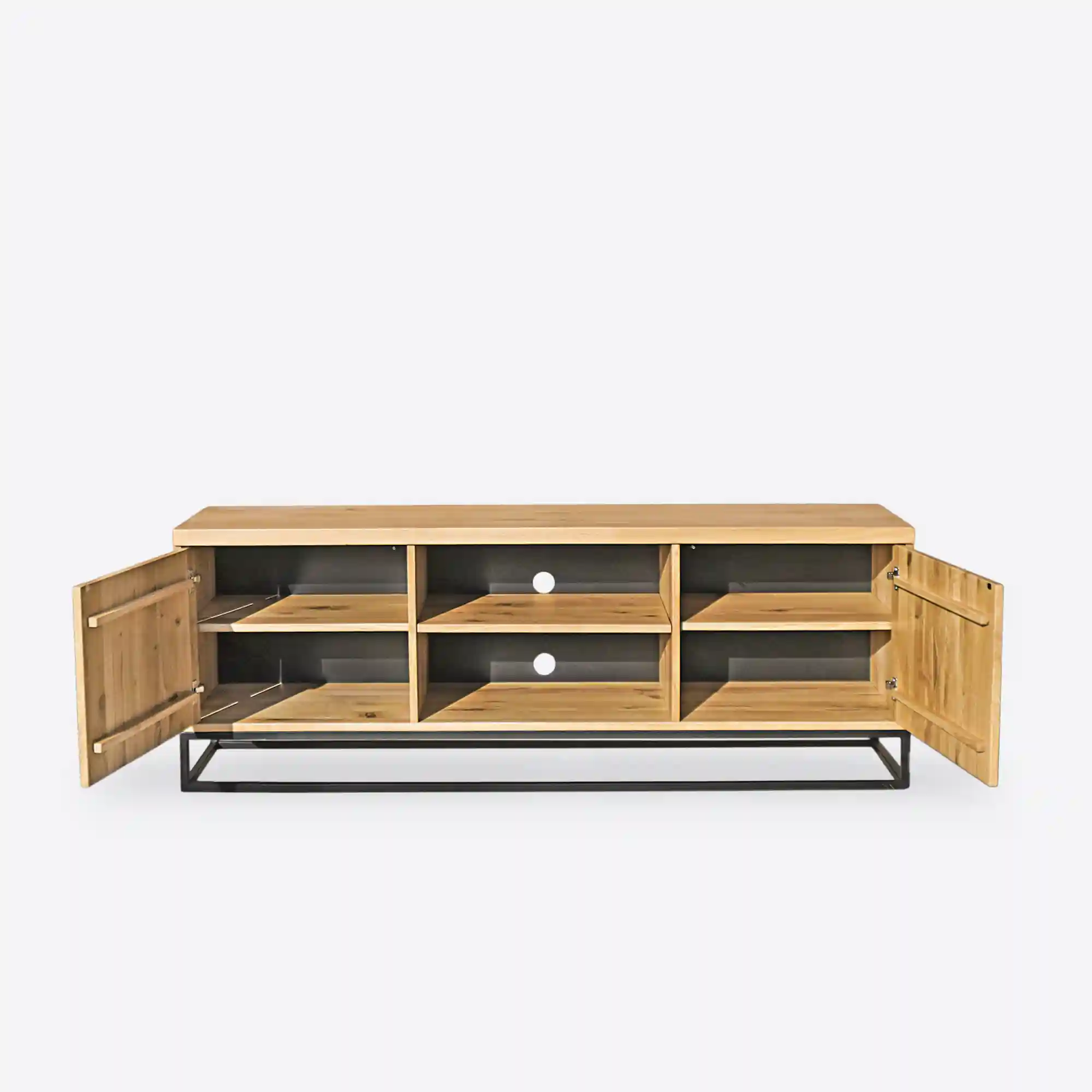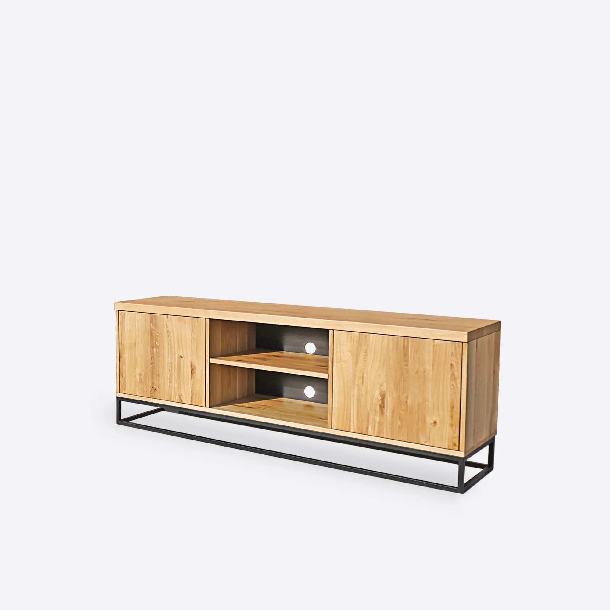 Dębowa szafka RTV CARLA I charakteryzuje się przede wszystkim nowoczesnym podejściem do wystroju wnętrz, stawiając na nietuzinkowe połączenia metalu, drewna oraz płyty laminowanej. Industrialną szafkę RTV wykonano ręcznie w naszej stolarni. Drewno lite w połączeniu z metalem daje dużo lepszy efekt wizualny. Dębowe szafki RTV loft posłużą przez wiele lat, dodając pomieszczeniu elegancji i stylu. Nasze meble cechuje prostota i lekkość, a przy tym solidne wykonanie i nowoczesny design. Z nami bez wychodzenia z domu możesz sprawić, że Twoje wnętrze będzie gustowne, a zarazem funkcjonalne!
