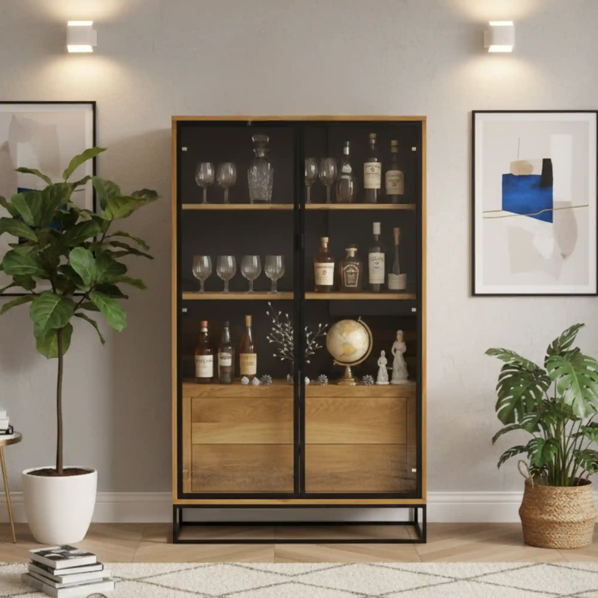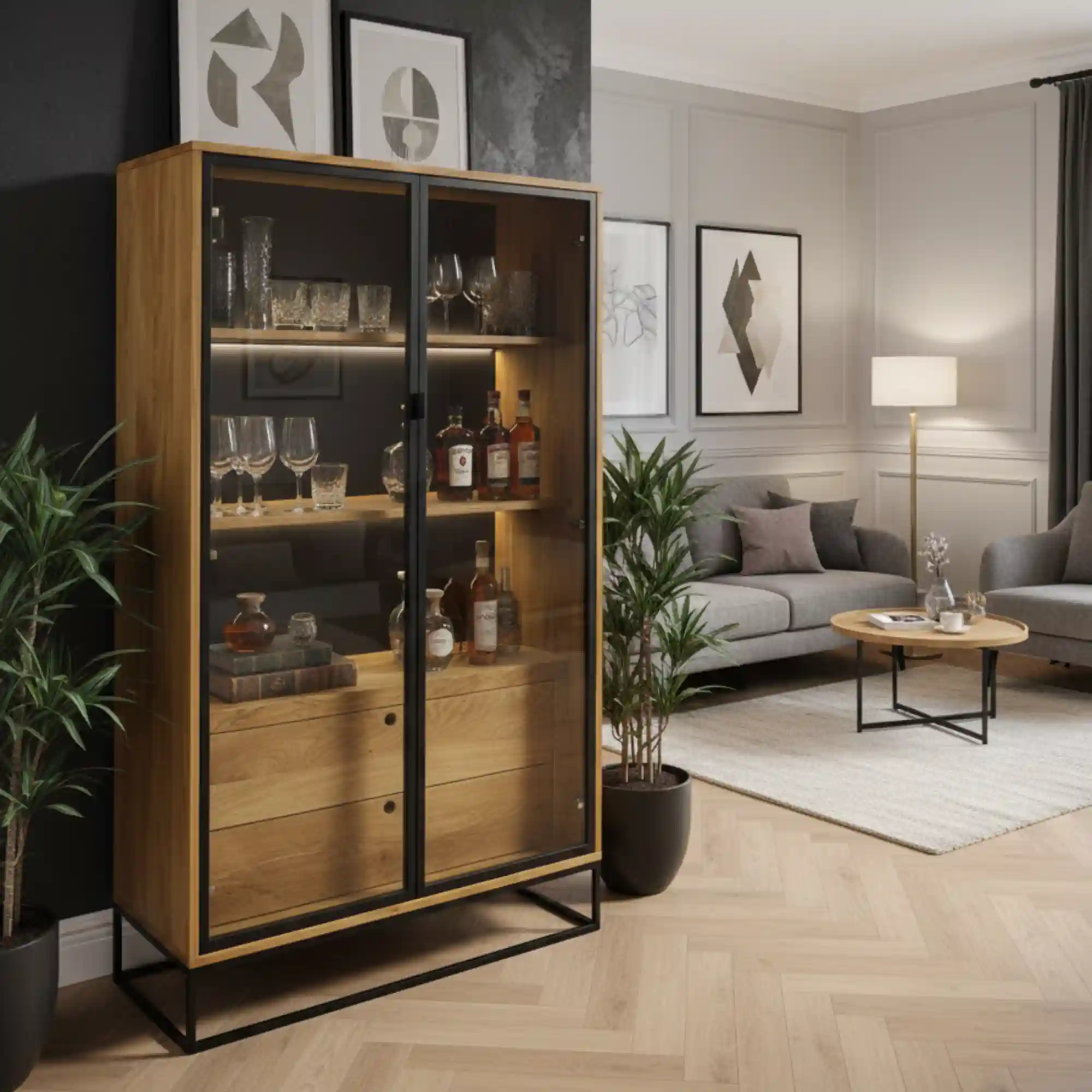 Witryna dębowa loft z litego drewna do salonu MERIS II