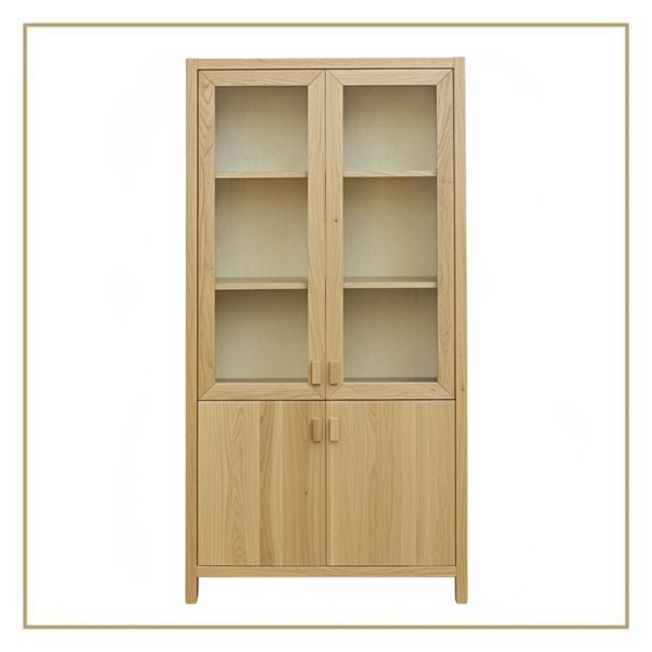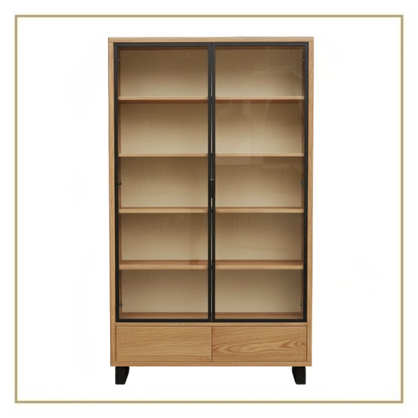 Naturalne drewno sprawia, że każda witryna jest unikatowa. Różnice w usłojeniu, kolorystyce oraz rysunku drewna podkreślają indywidualny charakter mebla i nadają mu autentyczności. Odpowiednie wykończenie powierzchni zabezpiecza drewno, wydobywając głębię koloru i naturalne piękno materiału, jednocześnie ułatwiając codzienną pielęgnację.