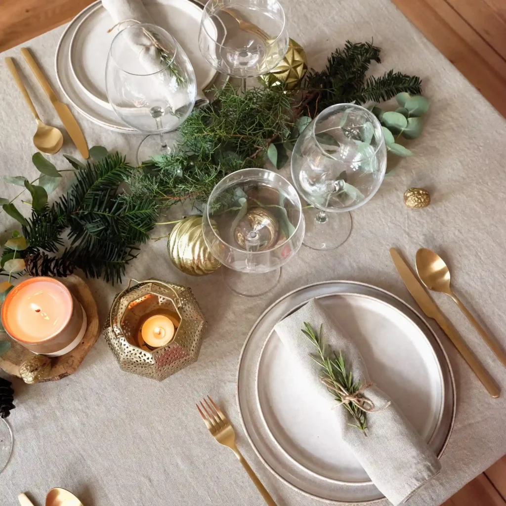 - Naturalne elementy: udekoruj stołową ścieżkę gałązkami jodły, szyszkami i orzechami włoskimi. Dodaj kilka świeżych kwiatów, aby dodać koloru.