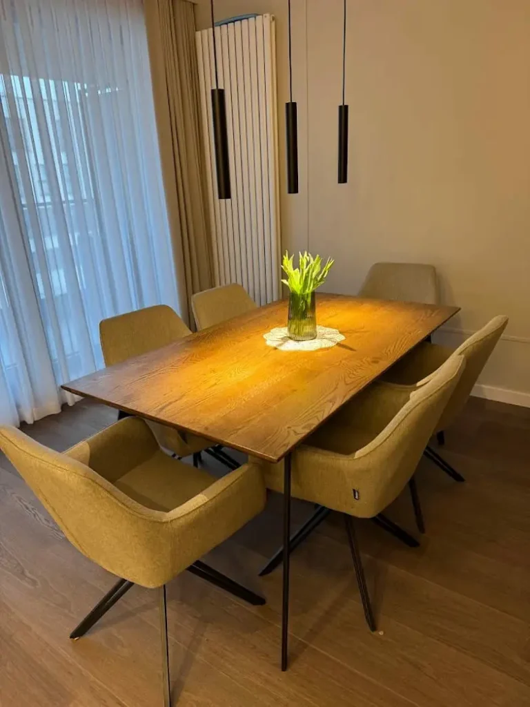 - Wysokość – dopasowanie do krzeseł oraz stylu podstawy